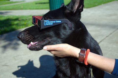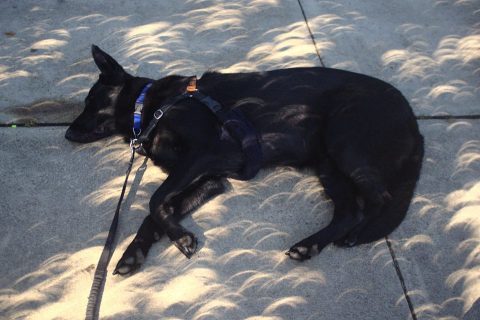 But seemed relatively unimpressed. (Do you see the mini-eclipses in her fur?)