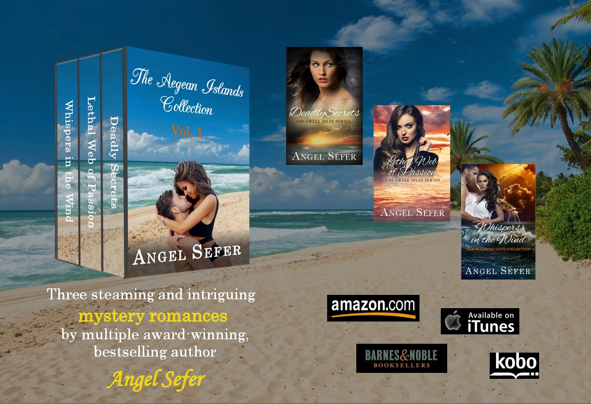 The Aegean Islands Collection Vol. 1 was released in August with an amazing response from my readers. This first volume included mystery romances Deadly Secrets taking place on Mykonos, Lethal Web of Passion taking place on Skopelos, and Whispers in the Wind taking place on Alonnisos.