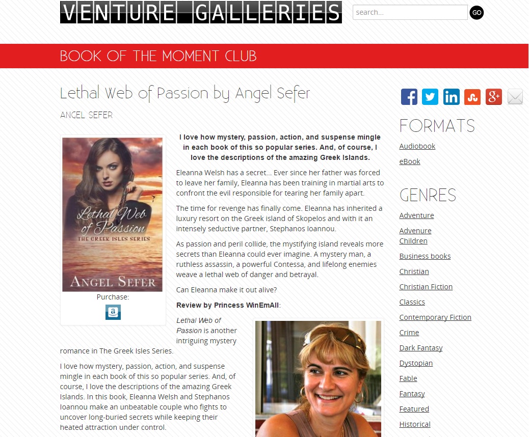 Lethal Web of Passion is the Featured Book of the Moment Club selection today on Venture Galleries