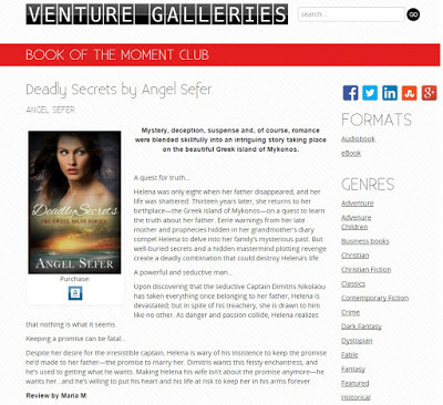 I'm so honored and thrilled that Deadly Secrets is the Featured Book of the Moment Club selection today on Venture Galleries