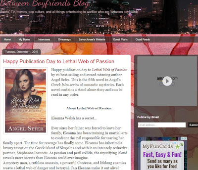 Between Boyfriends Blog: Happy Publication Day to Lethal Web of Passion: Happy publication day to Lethal Web of Passion by #1 best-selling and award-winning author Angel Sefer. This is the fifth novel in Angel's Greek Isles Series of romantic mysteries. Each novel contains a stand alone story and can be read in any order...