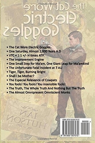 The Cat Wore Electric GogglesOne Saturday, Almost 2,000 Years A.D.VTC = 1:1 +/- H times ATPThe Improvement EngineOne Small Step for Ma’am, One Giant Leap for Ma’amkindThe Unfortunate Fatal Incident at 7 AUTiger, Tiger, Burning BrightShall I be Mother?The Especial Relevance of CowpatsYou fools! You fools! You insensible fools!The Truth, The Whole Truth And Nothing But The TruthThe Almost Omnipresent Omniscient MonksAmazon / Amazon UK / Barnes & Noble