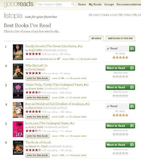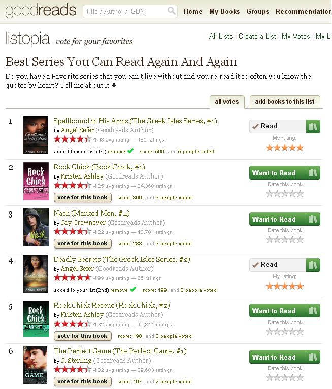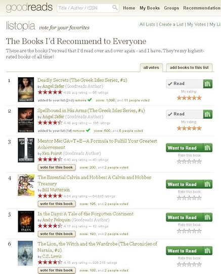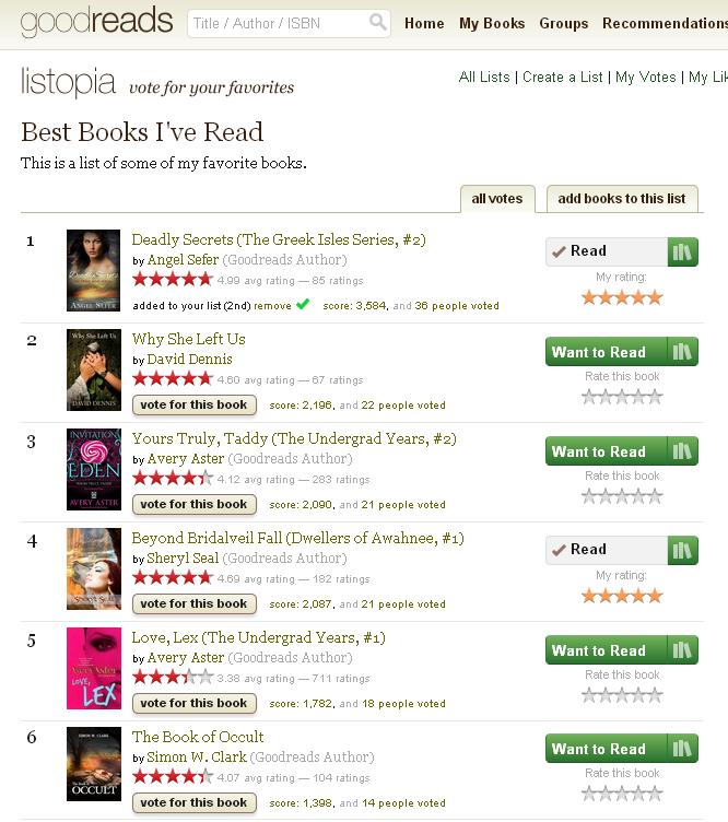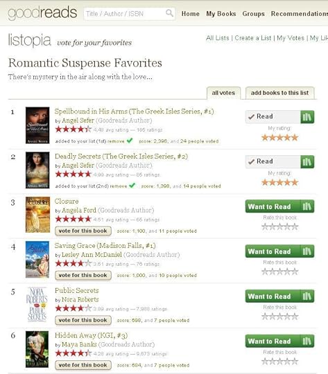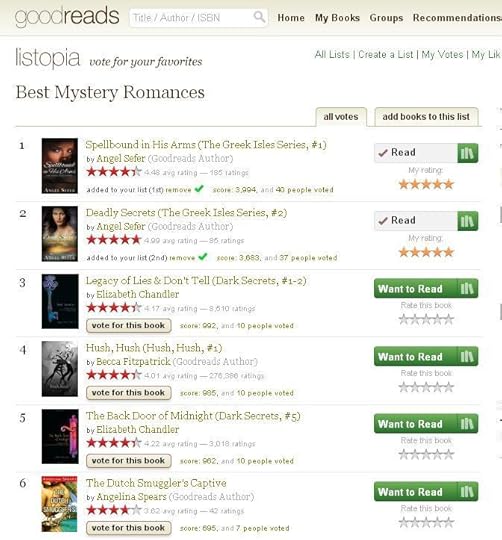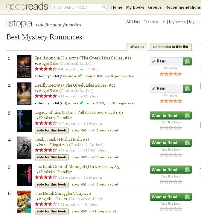 There is a reason why “Spellbound in His Arms” and “Deadly Secrets”—the first and second mystery romance novels in “The Greek Isles Series” are voted by readers #1 on numerous Listopia Lists on Goodreads, like: