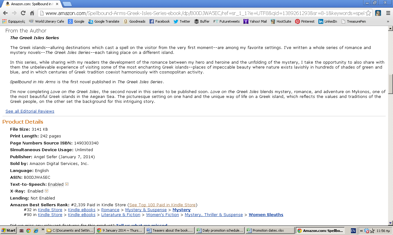 SJ Publicity client Angel Sefer has gotten herself a book deal for Spellbound in His Arms, her debut novel and the first book in the thrilling Greek Isles Series! The romantic mystery novels each takes place on a different Greek Island beginning with the events of Spellbound in His Arms on Corfu. Angel's new publisher will re-release her first novel as soon as March or April 2014. The next book in the series will hopefully be released later this year.