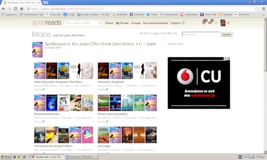 “Spellbound in His Arms” hits #1 on 3 Goodreads Listopia Favorite Lists, #2 on two more, and in the top ten on three more, i.e: