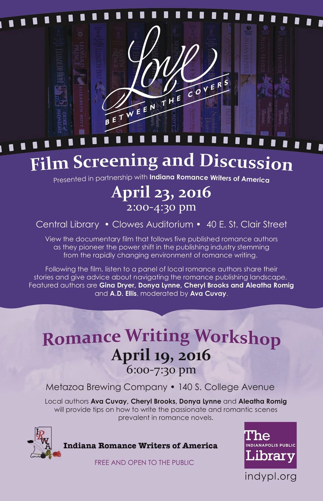 Look for my purple hair at the Indianapolis Central Library after the Love Between the Covers screening.