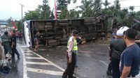 Kecelakaan maut melibatkan tujuh kendaraan terjadi di Jalan Raya Puncak, Bogor. Sopir bus dan sopir truk tewas.