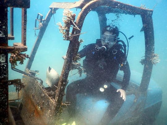 Cobalah menyelam di pesisir Pasir Putih, Situbondo, Banyuwangi. Tak hanya mengagumi karang dan aneka jenis ikan, namun diver juga bisa bisa selfie di ruang kemudi kendaraan forklift.