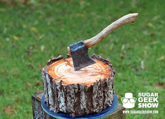Kue berbentuk potongan batang kayu dan kapak yang menancap ini mengingatkan akan Lumberjack. Seniman kue ini membuat seluruhnya dari kue sehingga bisa dimakan.