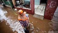 Hujan deras yang mengguyur Jakarta dan sekitarnya, Minggu (6/12) membuat banjir di wilayah permukiman di pinggir Kali Ciliwung.