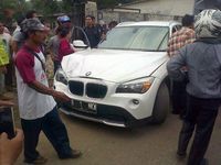 Insiden kecelakaan lalu lintas terjadi di Tangerang Selatan. Sebuah mobil BMW berwarna putih bernopol B I NKA menabrak warung.