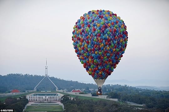 Mungkin ada traveler yang sudah menonton film 'Up' karya Pixar. Terinspirasi, seorang traveler asal Inggris mencoba keliling dunia naik balon udara warna-warni.
