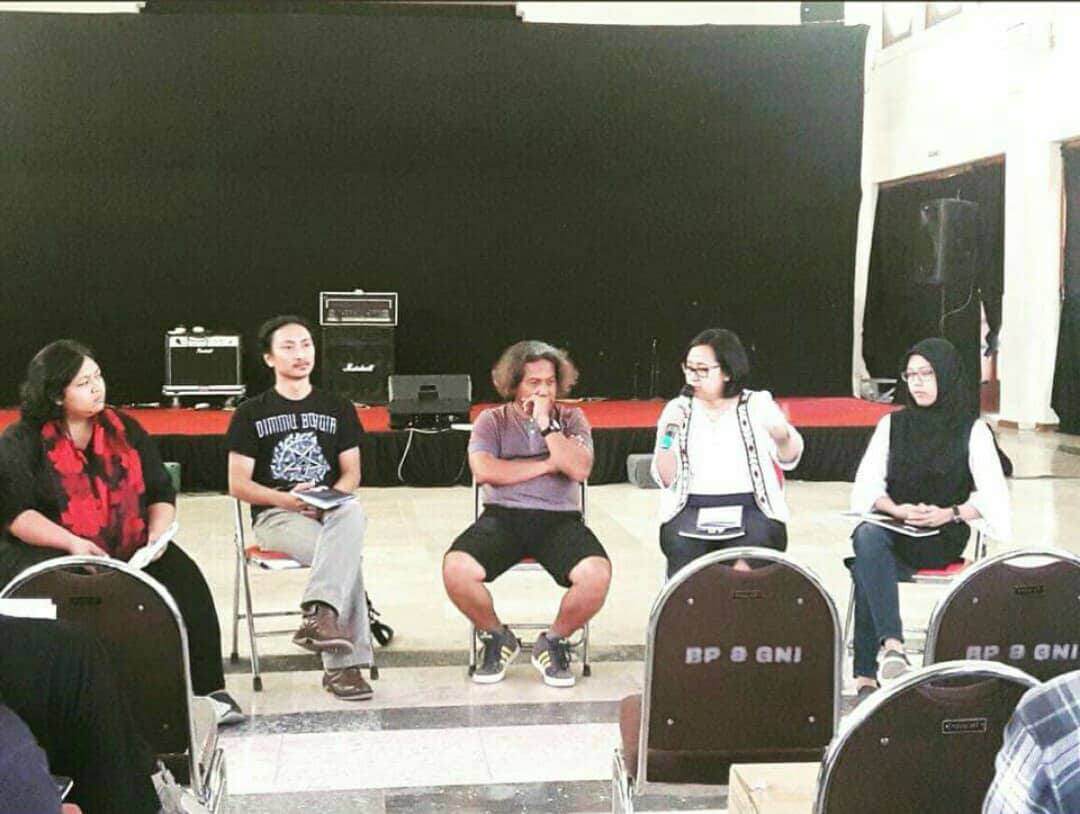 Dokumentasi : Adrea KristatianiJoko Gombloh dan Joko Porong sempat memberikan pendapat yang menarik tentang eksistensi sebuah komunitas musik. Bagi Joko Porong, komunitas musik dewasa ini banyak yang tak tampak, bahkan cepat muncul dan cepat hilang. Porong menggarisbawahi tentang pentingnya sinergi antar komunitas musik dan sistem publikasi yang perlu diperbaiki. Sedangkan Joko Gombloh memberikan komentar terkait ciri sebuah komunitas musik yang sehat. Menurutnya, komunitas harus berbasis sosial dan ideologis. Basis sosial berarti berkembang secara cair, tidak formal, serta anggota yang dapat saling beriringan (hirarki keanggotaan hanya sebagai sarana formalitas untuk membagi tugas). Sedangkan basis ideologis harus tertancap kuat karena berfungsi untuk menjaga kontinuitas, konsistensi, dan spirit dari sebuah komunitas. Joko Gombloh mencontohkan komunitas tempatnya bergiat, Bukan Musik Biasa (BMB). Basis sosial BMB ditempa dengan sangat kuat selama bertahun-tahun dengan merangkul segala kalangan, dan menghargai kebhinekaan musik apa pun. Ia juga tak segan memberi pandangannya tentang Pertemuan Musik. Konsep PM yang dilegalkan secara hukum sejak awal berdirinya cukup membuat Gombloh terkejut. Baginya, legalisasi dikhawatirkan akan memudarkan basis ideologis dan basis sosial, karena legalisasi akan menciptakan sebuah kepentingan baru yang mampu mengikis dua unsur basis komunitas itu. Namun pada akhirnya, sebuah komunitas dilegalkan atau tidak bukan menjadi masalah asalkan tetap disokong oleh dua basis tersebut. Ia pun mengingat bagaimana karakter Slamet Abdul Sjukur (SAS) sebagai pendiri PM. SAS dikenal sangat idealis dan kritis menyikapi sesuatu, bahkan untuk sebuah ideologi organisasi. Termasuk sikap kritis SAS ketika berada dalam sebuah komunitas dengan basis ideologis yang terkikis, SAS akan bertindak dengan meninggalkannya. Sehingga, Joko Gombloh meyakini bahwa SAS memiliki pertimbangan dan arah tersendiri dengan basis ideologis kuat pada Pertemuan Musik.