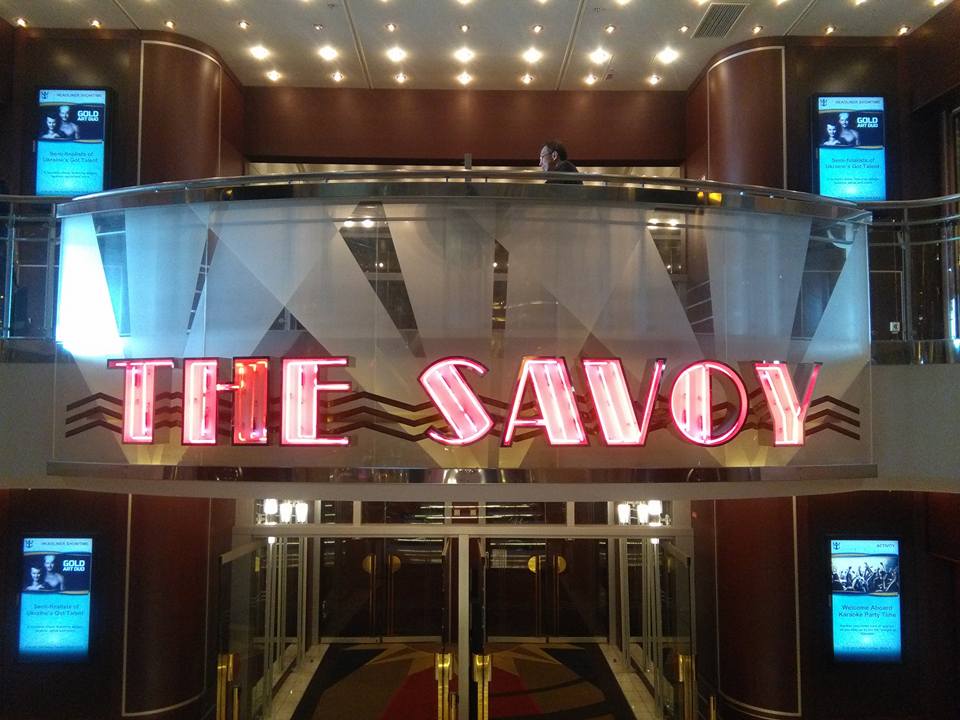 Kenyang makan malam, acara malam berikutnya adalah menonton pertunjukan broadway di Savoy Theatre deck 3. Peserta cruise disuguhkan berbagai plot cerita pendek yang dipentaskan dalam bentuk teatrikal dan diiringi band secara langsung. Di saat yang bersamaan dengan broadway, di Royal Promenade diselenggarakan bazaar serba $10 oleh beberapa merk. Penggila belanja juga terfasilitasi.