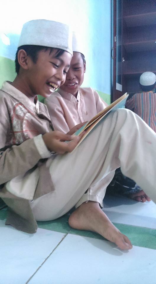 Hari ini termasuk Jumat yang spesial. Setiap salah satu donatur memutuskan untuk menyalurkan zakatnya pada kami, adik-adik mendapatkan beberapa potong roti di samping susu kotak yang rutin kami bagikan setiap Jumat. Di akhir pertemuan, tanpa dikomando, mereka sudah berbaris, siap menerima susu dan roti. Seringkali saling dorong, berebut ingin dapat lebih dulu. Begitu adik-adik sudah seluruhnya mendapat bagian, makanan dan susu yang berlebih kami bagikan ke warga sekitar musholla. Kami menyebutnya "roadshow" : membagi-bagikan makanan pada warga, menyapa, sekaligus menghimbau jika anak atau cucunya boleh bergabung untuk belajar dan membaca/meminjam buku di musholla setiap Jumat secara gratis. Rutenya pun bergantian, jalan sebelah kanan atau kiri musholla. Kami akan berjalan beramai-ramai sembari mengamati bagaimana kondisi tempat tinggal dan keluarga adik-adik.Saya perlu berterimakasih banyak pada teman-teman volunteer yang luar biasa. Saya selalu terharu membaca ungkapan kangen kalian pada adik-adik ketika berhalangan hadir. Saya kerap merasa bersalah ketika meminta bantuan kalian untuk membeli alat tulis untuk adik-adik, padahal lelah kalian belum kering sehabis pulang kuliah atau kantor. Saya tahu beberapa dari kalian kerap membelah hiruk-pikuk lalu lintas dari ujung Surabaya hanya demi menghabiskan sore bersama adik-adik. Saya juga tahu beberapa dari kalian mesti susah payah menembus izin orang tua. Saya bisa merasakan ketulusan kalian, dan keinginan untuk selalu kembali. Bukan karena hal-hal lain, namun demi adik-adik. Terima kasih.Beberapa dari kalian yang terhalang waktu dan jarak karena kesibukan, saya ingin mengabarkan beberapa berita. Tentang Hakiki yang begitu gemar membuat keributan, hari ini ia begitu tenang dan tekun belajar perkalian. Meski sudah bukan di usia semestinya untuk menghapal tabel perkalian, tapi usahanya membuat saya bahagia luar biasa. Nung yang baru saja khitan minggu lalu, sudah kembali bermain seperti biasa. Amel yang jangkung dan dewasa, sudah mulai bisa membantu kita untuk mengajari adik-adik yang lebih kecil. Trio 'rusuh' Nopal, Reja dan Ali sudah jauh lebih tertib dan tenang. Mereka lebih sering membaca buku, menggambar atau meminta dibacakan cerita. Meski masih suka membuat khawatir karena berlarian mengikuti mobil dan motor kita ketika pulang. Adit dan Rizki masih sering ribut, tapi setidaknya tak sampai saling meninju perut seperti sebelumnya. Yenni yang pernah menangis karena kangen ayahnya, kini berkembang cepat menghapal kosa kata Bahasa Inggris. Biyan yang sebelumnya kita sempat khawatirkan, minggu lalu membuat saya haru. Ia dengan antusias menceritakan tentang roti dan susu yang ia makan bersama adiknya, Sehan. Mudah-mudahan tak ada lagi adik-adik yang memakan singkong bakar dengan kulitnya. Hari ini banyak dari mereka yang melihat pertama kali buku pop-up dengan antusias. Membolak-balik dan memainkan halamannya. Banyak berita lain yang tak tertangkap mata, kiranya. Tapi semuanya berkembang lebih baik. Cukup jauh dari ketika pertama kali kita memulai. Karena itu, terima kasih karena telah turut merasa memiliki taman baca ini. Saya tahu beberapa dari kalian akan tak setuju dengan adanya tulisan ini, karena ada kekhawatiran adanya kesan 'menjual kesedihan'. Bukan. Ini bentuk berbagi kebahagiaan dan rasa syukur. smile emoticon