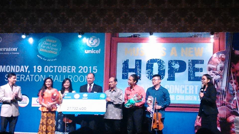 Finna Kurniawati (violin), Shienny Kurniawati (harp), Ade Sinata (cello), Michael Adi Tjandra (viola), Glenn Bagus (piano), SOOS (String Orchestra of Surabaya) Children Ensemble menampilkan musik mereka untuk sebuah konser amal yang digagas oleh Sheraton Surabaya, SOOS, dan UNICEF, bertajuk Check Out For Children 2015. Sesuai temanya, dana yang terkumpul dari konser ini dikelola dan donasikan UNICEF untuk anak-anak yang membutuhkan di berbagai negara, seperti Indonesia, Bangladesh, India dan China.