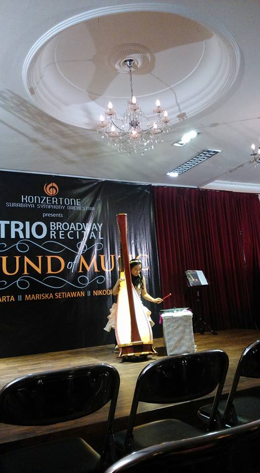 Surabaya Symphony Orchestra Conservatory Hall Surabaya, Rabu lalu, 10 juni 2015 sejak pukul 18.30 sudah tampak ramai. Konzertone : Trio Broadway Recital kali itu adalah penyebabnya. Di ruangan dan panggung yang tak terlalu besar, justru menjadikan konser ini bersuasana santai dan akrab. Ketika break, audiens disuguhkan berbagai jenis kudapan manis. Macaroon, fruit cake, mini doughnut, biscuit, dan lain sebagainya disajikan di taman belakang yang memberikan nuansa hangat pada recital kali ini.