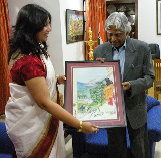 So potent was my meeting with you Dr. Kalam, that when I made a foray into writing, this visit of yours to the school became a backdrop of my book! My book, Love's Labor, an e-book published by Indireads, a Toronto-based publishing house, deals with the caste and communal differences that so plague our society. How the protagonists sometimes bow down, and, at others, rebel against the limiting influences of family and society; how the role of parents defines our choices as Indians; our deference to the collective consciousness rather than upholding individual wishes form the fabric of Love's Labor.