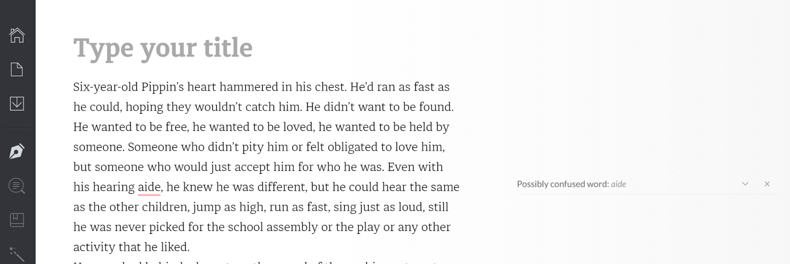 4. GingerI've downloaded Ginger's app, because it's free (at least partly) and its corrections can be accepted within the document. After the trial, they give you a weekly word limit that's free. This allows you to edit the manuscript with broad issues. It's not perfect. You have to do a line edit yourself, but punctuation gets checked well. All the other programs have a fixed word limit. Only x number of words on a page, but I haven't had that problem with Ginger.