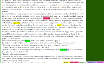 This is a bit complicated with all the colors. It tells you how many adverbs, homonyms etc I used by coloring up the paragraph. It's not helpful to me, because I have to read, then go back to my document and edit the colored words, if I choose to. I don't see much punctuation edited here and that's one of my primary requirements in editing software.