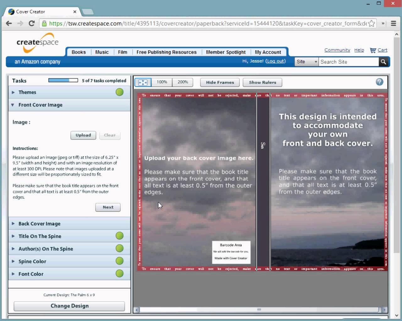 I received plenty of compliments on my physical book cover. I must say it took quite a bit of trial and error, and I mean more errors than I would like, to get it to look the way it does. I used Createspace's Cover creator, which is a free service provided by Createspace.