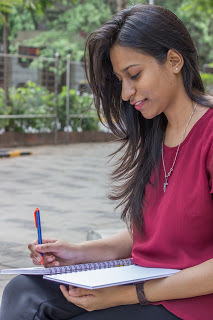 Narrow down a list of ten photos or poses you like and swap them with your photographer (also send you own photo-so they know what you look like). I did this with Tejaswini on Friday night and we both had some similar pictures. But it means that you need to go through the tons of pictures out there and save them. Don't expect the photographer to get a dream of what you want. Do the legwork yourself, it helps her/him so much that you know what you want. Also be open to ideas. My photographer had done shoots before, so she knew what poses would work for me, what props to carry along. Don't reject her ideas. One of my photos writing, which I love, I'd never have thought of it, but she did and it turned out great.