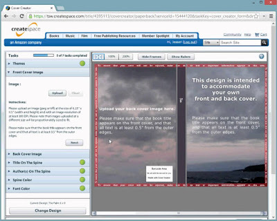 This is the most important. You have to splash money on this because without an image, its not really going to make your book stand out. I did go through the copyright free images provided by the Createspace team. They've got a gallery, where a single key word can present a collection of related pictures, but I wasn't too happy with the images. Mine was better. The front cover image has to be 300 dpi and about 4.01 x 6.24 inches in size. That's important. The software will not accept a low resolution image.