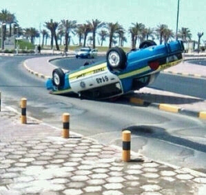 While there's a whole discussion on why this patrol car flipped, from high speed pursuit (illegal in UAE) to chasing girls and even the tyre exploding... etc ....... but you can easily tell why the traffic rules in Kuwait are such.