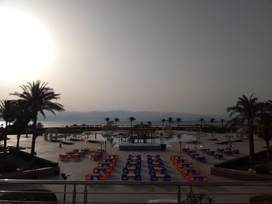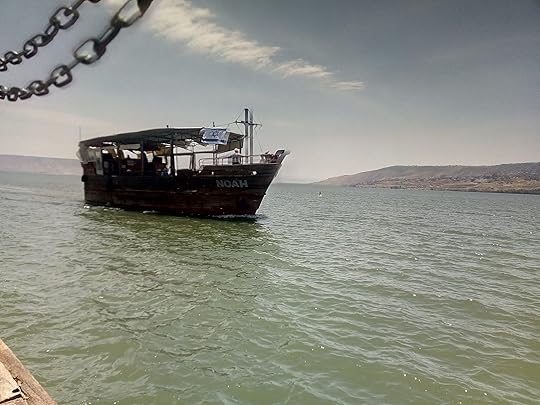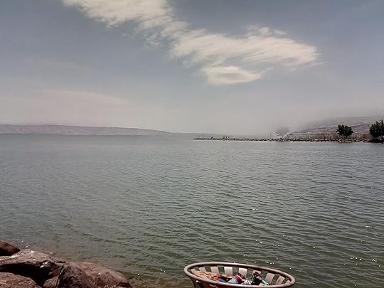 Sea of Galilee. We stayed overnight in Tiberias. The Sea of Galilee is pretty big. In fact, the day before, when the strong winds were gusting, all boat tours were cancelled. Thankfully, we were in Jordan at Mount Nebo.