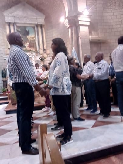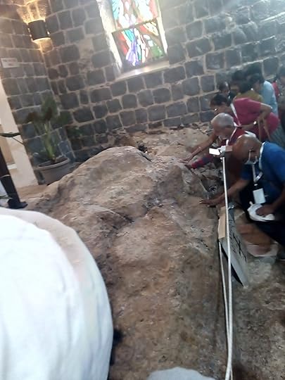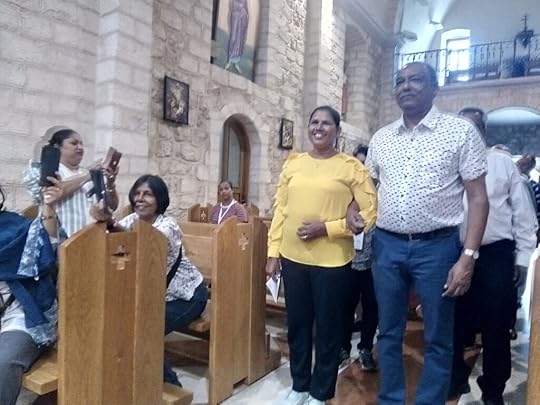 The visit to Cana was a highlight for many in our group. There was one couple celebrating 47 years of marriage. There were many who were above 30 and 20 years of marriage. So they all renewed their marriage vows at the place where Jesus performed his first miracle of changing water into wine. Look at the size of the jar! Fr Reagan had a very beautiful message here. Invite Mary into your circumstances and she will notice what is missing and tell Jesus about it. I loved this message.