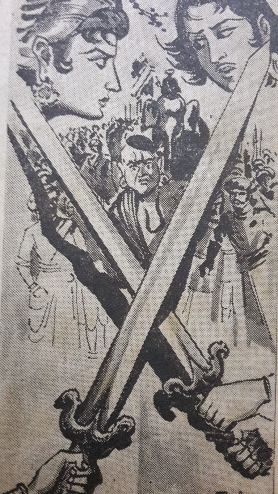 When Vandiya Devan shouted his warning, ‘Ayya, draw your sword,’ the Prince heeded it by immediately. Vandiya Devan too drew his sword. They were not ordinary swords but were large and heavy with a sharp edge to it. The soldiers who had met them near the Maha Bodhi tree had given them the swords.