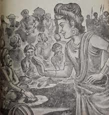 The food was ready by the time the play ended. Steaming hot Pongal and vegetable curry were served to the soldiers on stacks of lotus leaves. As the famished soldiers ate through their meal, the Prince moved around them, chatting and enquiring about their health and well-being. The soldiers who were singled out by the Prince for conversation were elated beyond words while their companions looked at them jealously. Such was his charm!