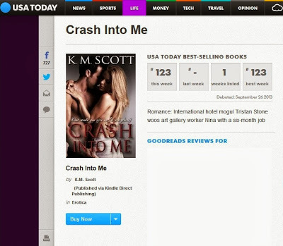 I woke up this morning to see that Crash Into Me had hit the USA Today Bestsellers list! I'm so thrilled I can't explain it.