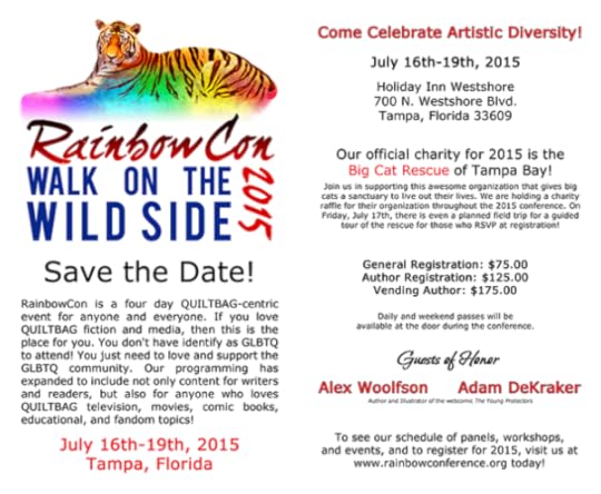 As many of you know, I’ll be at RainbowCon 2015 in Tampa, FL this July. I thought I should share more about the con and let y’all know how to get your tickets. I can’t wait to meet all the other authors and all the great readers out there!