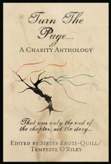 Turn The Page…. began as a simple idea and grew from there. No matter how bad things seem to be, just turn the page, there’s more—better—things to come. This is only one chapter in your life. It’s not the whole story. With this simple idea, Novice Sister Eroti-Quill—whom most know better as Tempeste O’Riley—began their quest to help Suicide Prevention and Awareness programs in their area. They managed to con (excuse me, convince) other authors to donate their time and stories to the project, and now, many months later, Turn The Page…. is born!