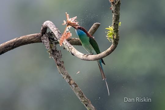 These are the perfect birds for a long lens. They zip out, grab food, bring it back to the same perch, whack the prey on the branch to immobilize it, and then pound it back. This perfectly timed shot was pure luck.
