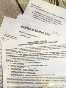 Every August since 2003, I’ve sat at the dining room table with a giant stack of school registration forms, a pen, and originally my address book, now my iPhone, so I can fill out the bajillion forms necessary to enroll a child in an Oakland public school. “Why can’t they carry over the information from last year and just let us update what’s changed?” I mutter every year, as I thumb through stacks of paper labelled “Technology Use Agreement” and “PTSA Application” and “Student Emergency Form,” the latter in triplicate. Multiply times two children, for their 13-year educational overlap, and it tests the most patient form filler.