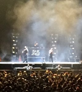 Run the Jewels are an American hip hop duo consisting of rapper/producer El-P and rapper Killer Mike. They’re superwoke and super funny and super self-aware. Killer Mike said, and I paraphrase, “You parents in the audience must be wondering how you are listening to us. Just think of us as Drunk Uncle Jamie and High Uncle Mike speaking up at your family reunion.” Pretty apt description. They could ease off the strobe lights, as far as I’m concerned, but otherwise they were perfection.
