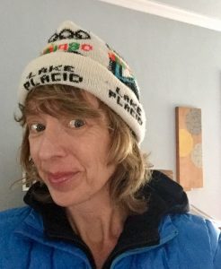 That gave me an idea. I went back into the winter hat box to find one that I’d placed in there after my last visit to Rochester. It snowed one day that I wanted to go for a walk, so I reached up onto the shelf of my late dad’s closet and landed on this beauty: a knit wool cap from the 1980 Lake Placid Olympics.