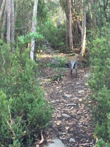 She who laughs, sees no wombats. We had some trepidation before the trip about the strangers with whom we’d be spending our six days in very close quarters – if they were weird or mean, there would be no escape. Instead we had the opposite problem: our fellow hikers were so interesting and nice that we had a hard time shutting up while we walked. It didn’t seem to bother the wallabies much – we saw plenty, including this guy making his escape down the path.