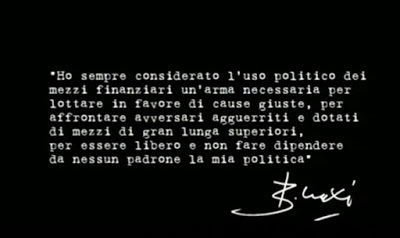 Chi poteva fermare Bettino? Nessuno. Aveva l‘Italia in mano. Solo una forza superiore che aveva interesse a rimuoverlo insieme a una classe politica, corrotta sì, ma che con Craxi aveva trovato una politica estera e interna propria poteva fermarlo. Una forza che già allora si manifestava globale. Senza limiti e confini. Una forza sempre più dipendente da motivazioni altre che quelle inerenti a un sistema nazionalistico, e che fin da allora si scopriva interessata a una spinta sovranazionale e avvertiva stretti persino i limiti di questo pianeta.