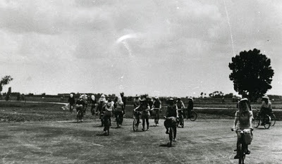 Nell’aia si erano riunite una ventina di ragazze in bicicletta. Indossavano abiti chiari che sotto il sole filtrato dai cirri assumevano ombrature scure.