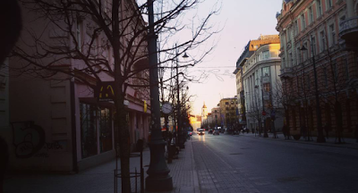 Camminava lungo Pilies gatvė, venendo da Rotušės Aikštė. Dopo l’ Istituto Culturale Francese la strada, alla fine di Didžioji gatvė nel punto in cui si connette a Pilies gatvė, diventa ripida. Quando nevica si forma uno strato di ghiaccio. Il pericolo è sempre di scivolare e rischiare di farsi male.