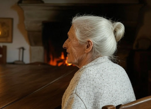 Her soft, smooth, white hair reassured me. It was the only light in that dark, big kitchen where she lived.
