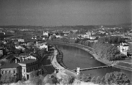 Vilnius risuonava al ritmo dei passi dall’alto della collina di Viršuliškės mentre giù scendeva per Narbuto gatvė sotto il cielo grigio sotto la pioggia fitta e si affrettava verso la città accovacciata all’orizzonte come un rifugio, una caverna urbana, che lo riparasse da qualcosa che non sapeva, e guardava giù in direzione di quel corpo urbano grigiastro materno che sembrava avvicinarsi; ma il cielo lo seguiva la pioggia lo seguiva come eternamente fosse sempre nello stesso punto e non imprimesse velocità e movimento in quell’azione di avvicinamento alla madre in attesa del figlio. Si sentiva sospeso. Sospeso nel tempo dei pensieri che erano oltre.