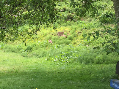 Deer, just frolicking in the grass outside the Short Circuit house.
