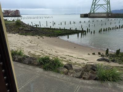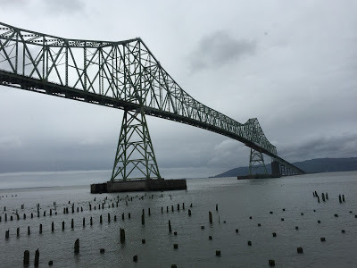 The Astoria bridge!PS. If you're wondering why the posts are still in the water, here's the answer. Whoever had a claim on the docks that used to be there retains the right as long as the stumps are in the water. If they're pulled up, that section of water become property of the city.