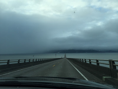 Since both bridges had wrecks, we were stuck. But we made the best of it by eating at The Rock. I love the movie The Rock, so I did a little squee to see a "Welcome To The Rock" sign in the restaurant.