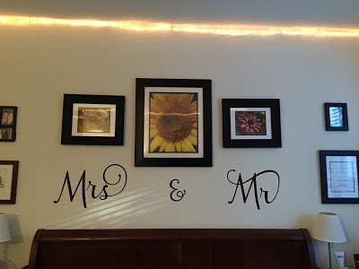 And, of course, we worked on decorating our room some more. My soul sister took the photos above our headboard, and she and Deek conspired to frame them and create an amazing Christmas gift for me. But we needed a little something below them to fill the space. When we saw the Mr. and Mrs. stickers, we knew we'd found just the thing!