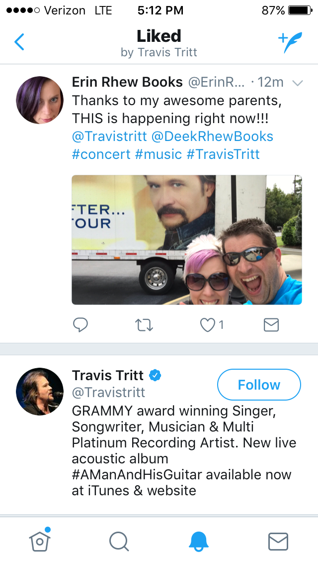 Lately, Deek and I have been going pretty hard with writing and regular life stuff. So, my amazing parents decided to give us a much needed break. They got tickets for all of us to see one of my most favorite country singers ever--Travis Tritt. It's so funny they'd pick Travis because Deek and I have often talked about how much we like his music and how much we'd love to do a little songwriting with him. And to put the icing right on that awesome cake, the concert was in my most favorite beach town! WINNING all around!